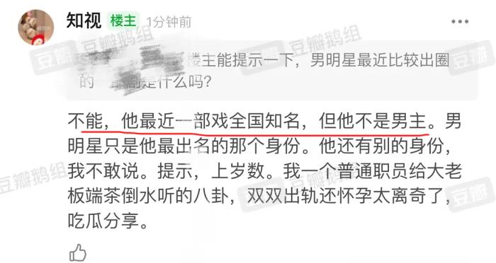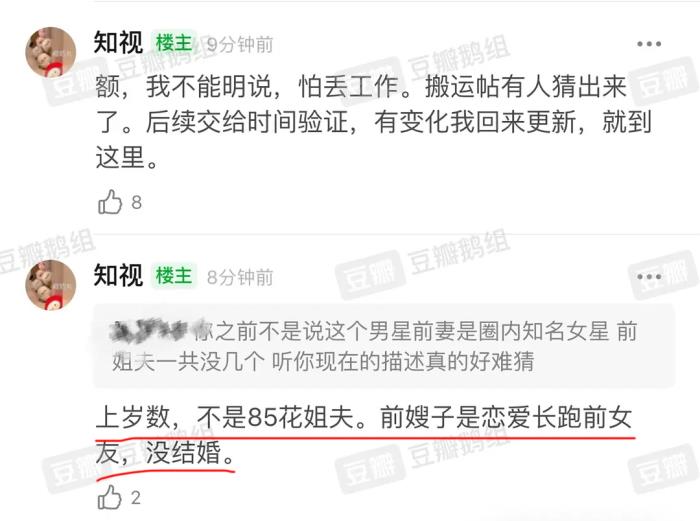 因为该博主的爆料实在是太drama了,要素过多,而且很狗血,不少网友都称很难猜出来,而之后该博主又出来爆料了很多信息,以及否认了一些网友们的猜测,该博主称男明星不是85花姐夫,结过婚,有孩子,北京人,而该男明星最近一部戏全国知名,但是他不是男主角,还表示该男明星的前任太出名了,是娱乐圈文艺女神,只是热度没有85花高。