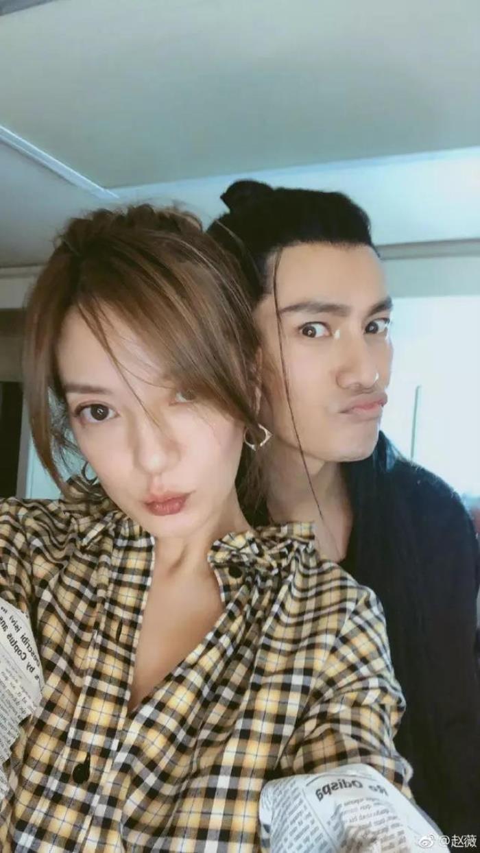 照片中两人表情搞怪,动作亲昵。陈坤头上戴着古装发套,可能是赵薇来剧组探班陈坤。赵薇在微博中写道:侍神令!我来看你啦!和你一起长大是最开心的事情!从大学到现在你一点都没变,还是像个小孩子。加油!Love!