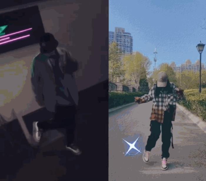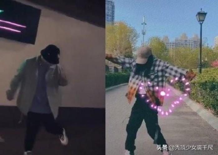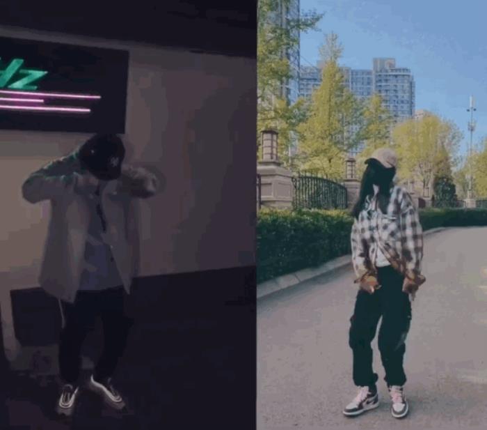 可以看到李小璐的视频里,跟着节奏挑着舞,穿衣打扮也是她现在超爱的嘻哈风格;而pgone的视频里,戴着口罩随着音乐跳舞,和李小璐跳的舞蹈一模一样,甚至两人都有着同款的嘻哈范儿。