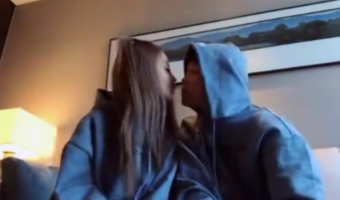 第一则视频中,两人在房间内拍摄情侣视频,靠肩,贴脸,背后抱轮番上演。