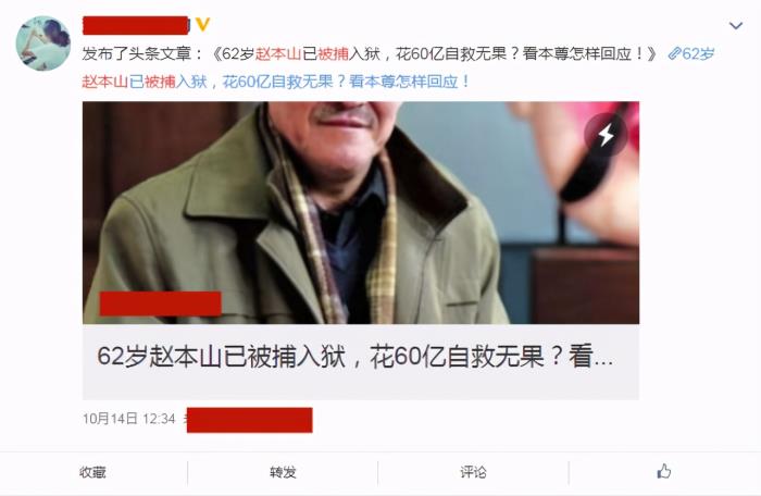 有网友就PS赵本山被抓的现场照在网上传播,造谣赵本山被抓,而且还衍生了多个版本,其中一个版本是赵本山企图自杀未遂,还在家中搜出了40000斤的黄金,另一个版本中是赵本山为自救,花费了60亿元。