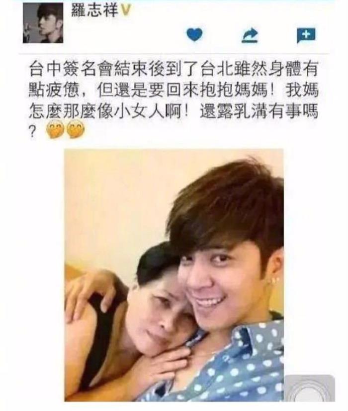 在罗志祥之前发过的社交日常当中,网友可以发现罗妈妈穿着暴露,常常是以小鸟依人之状依偎在儿子的怀里。