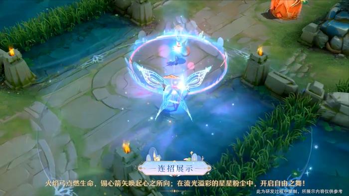 技能展示:特效非常的绚丽多彩,同时搭配了粉、紫、蓝、青这四种色,看起来很梦幻。