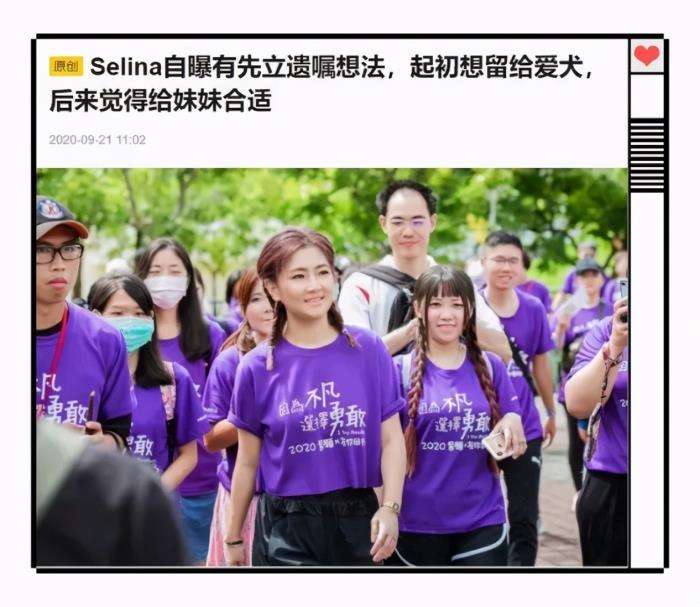 前段时间,因为好友小鬼黄鸿升的意外离世,Selina突然宣布立下遗嘱。