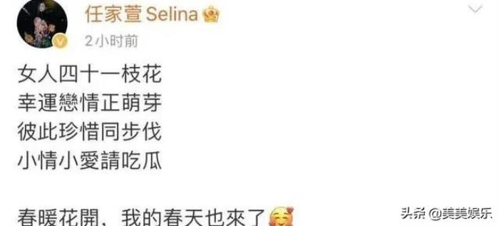 果然是春天到了,娱乐圈最近频频传出恋情瓜,不光是小花小生们蠢蠢欲动,40+的姐姐也大方认爱,