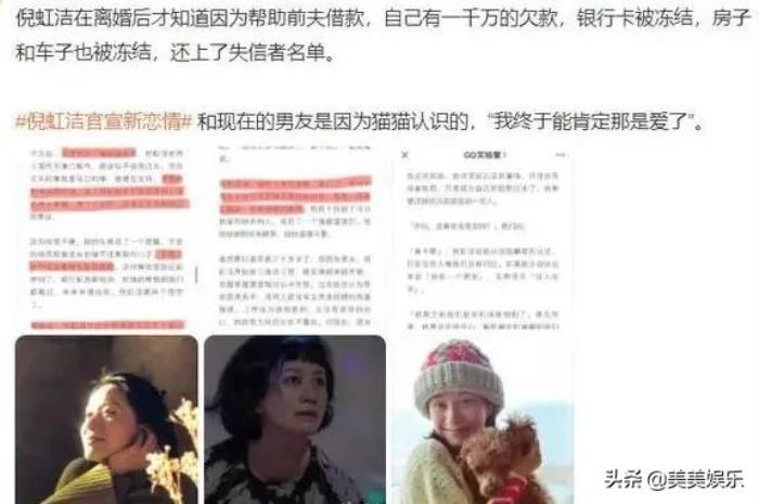 2009年,倪虹洁怀孕生了孩子,但也没能继续维持下去婚姻。离婚后更是发现自己为前夫借钱欠了一千多万的债。