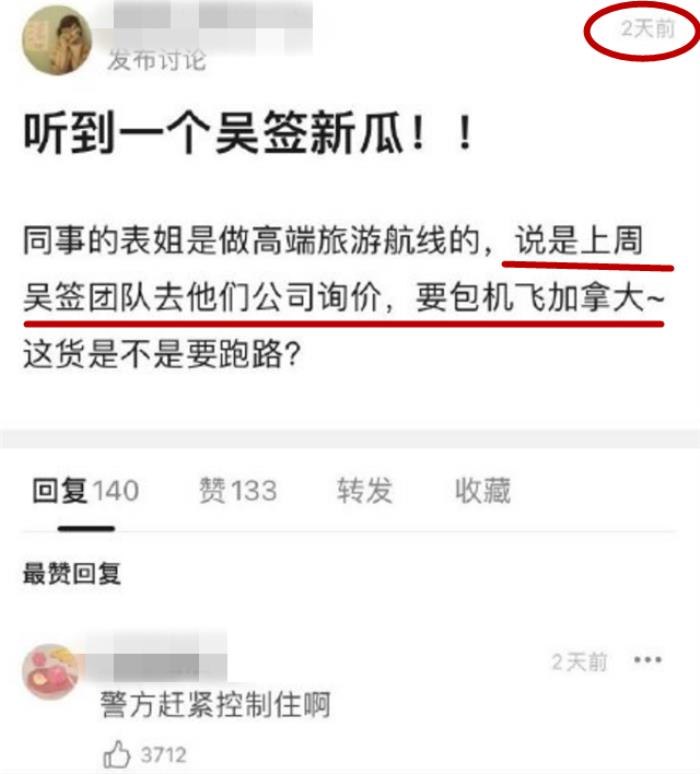 两天前就有网友透露吴亦凡疑似将要跑路了,这位网友同事的表姐是旅游公司的,上周吴亦凡团队就去他们公司问价,想要包机飞往加拿大。当时还有网友担心吴亦凡最后真的跑路了,希望警方能够赶紧控制住。结合警方目前的消息来看,这个网友透露的消息大概率是真实的,加拿大人吴亦凡居然真的想逃回去。