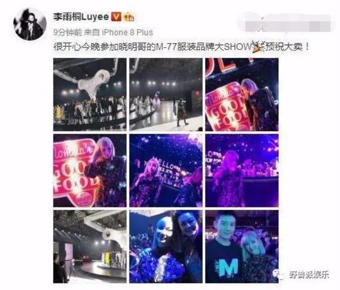 李雨桐参加某活动,和黄晓明合影。她很快把活动照片和合影PO上微博。