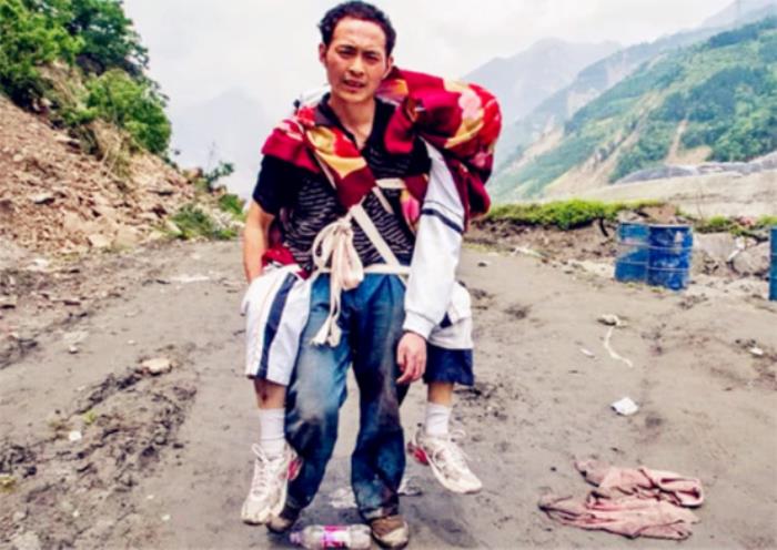 一路余震不断,四处都有滚石落下,程林祥背着儿子从下午13走到了23时,10个小时的路途,那么远那么难,对程林祥来说又是那么快。