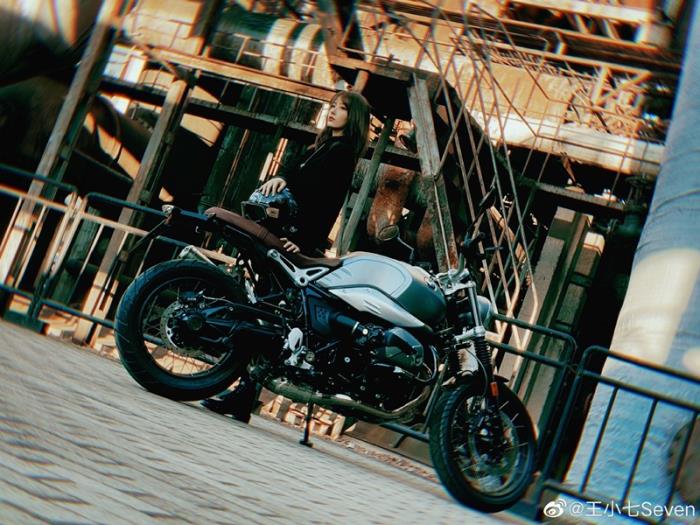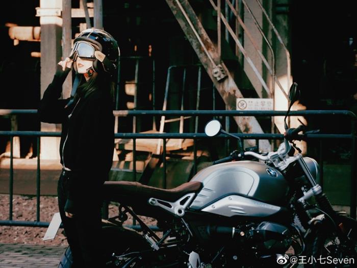 腾讯NBA美女主播小七在其个人社交媒体晒照变身机车少女,黑色劲装帅气追风。
