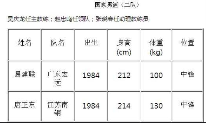 国家男篮二队的名单中,我们可以看到易建联的注册出生日期是1984年,而非1987年,此外,唐正东的年龄也存在水分,实际应为1982年。