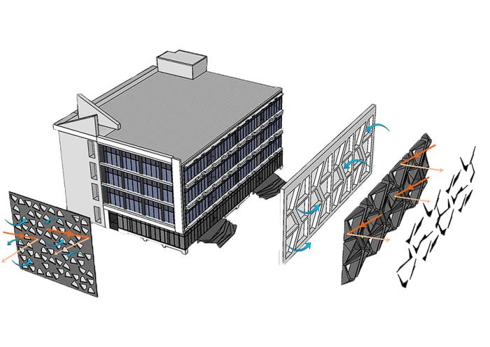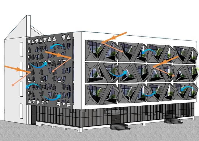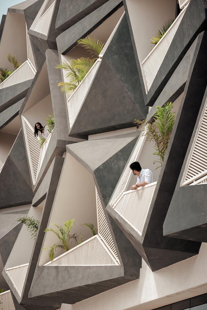充足的光照可以通过立方体块的阳台照亮室内,而独特的角度切割手法也让立面玻璃的安装变得简单方便。大楼内部的采光和通风也都因此处于较高的水准,保证了使用者的舒适感。