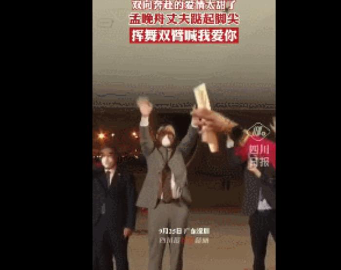 听到这句,孟晚舟侧过身,从单手挥变成了双手一起挥,也大声回复道:“爱你!”
