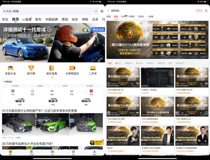 尽管在 WWDC 2021 上,苹果对于 iPadOS 的分屏功能进行了重点介绍,但真到了实际场景下除去自带 app 以外,体验并没有想象中好,首先就是很多常用 app 还没有对分屏进行支持,就比如抖音、斗鱼(非 HD 版)、懂车帝等新闻类 app。同时,这些资讯类app也存在屏幕比例的适配问题,竖向使用时顶部和底部会出现黑边,但观感会比游戏时的黑边更容易接受些。