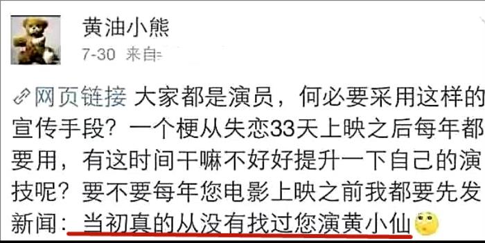 要不要每年您电影上映之前我都要先发新闻:当初真的从没有找过您演黄小仙。”