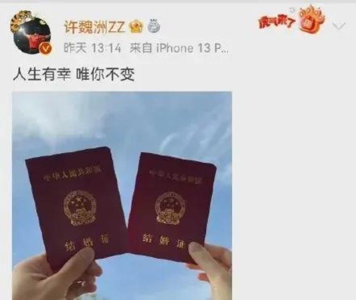许魏洲猝不及防地官宣结婚,震惊了一票吃瓜er。
