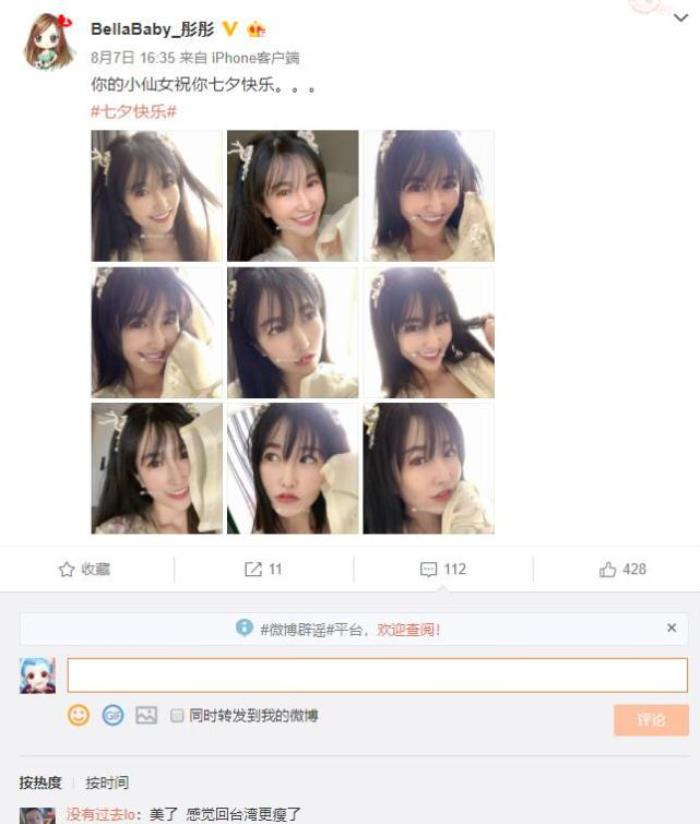 在七夕的时候贝拉发了一张自拍,大家也看到了,真的是惊艳众人啊,这么久没看到她,感觉又漂亮了,很多网友也纷纷表示:30岁了姿色不减,身材依然完美。对此你们有什么想说的吗?