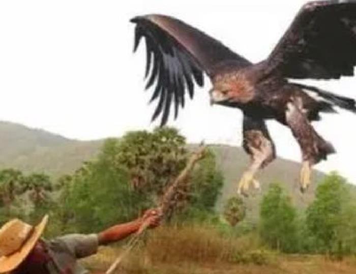 他拿着农具和金雕搏斗了一会儿,自己身上频频挂彩,金雕却毫发无伤。