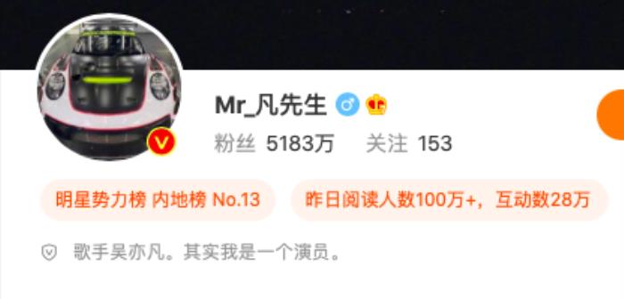 吴亦凡的微博简介是:歌手吴亦凡。其实我是一个演员。
