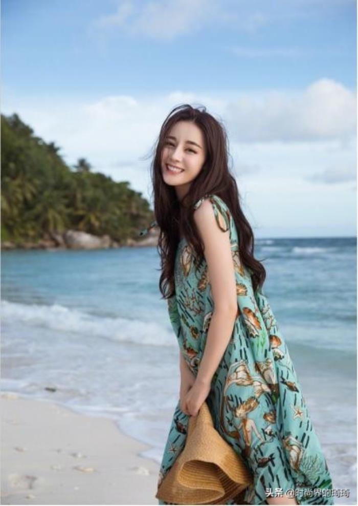 这身连衣裙看上去就有着满满的度假风,无袖的款式显得清凉舒适,裙身上加入了灰色花纹点缀,再与身后的海边景色进行搭配,给人带来神清气爽的感觉,就像被海风轻拂过一样,非常清新自然。迪丽热巴的回眸一笑更是吸引人。