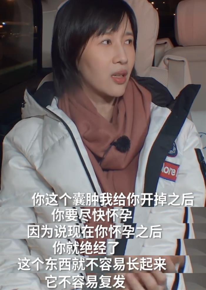 在她20多岁的时候,因为身体原因患上了卵巢囊肿。动手术之后医生建议她尽快怀孕,因为在怀孕期间是闭经的状态,囊肿不容易复发!