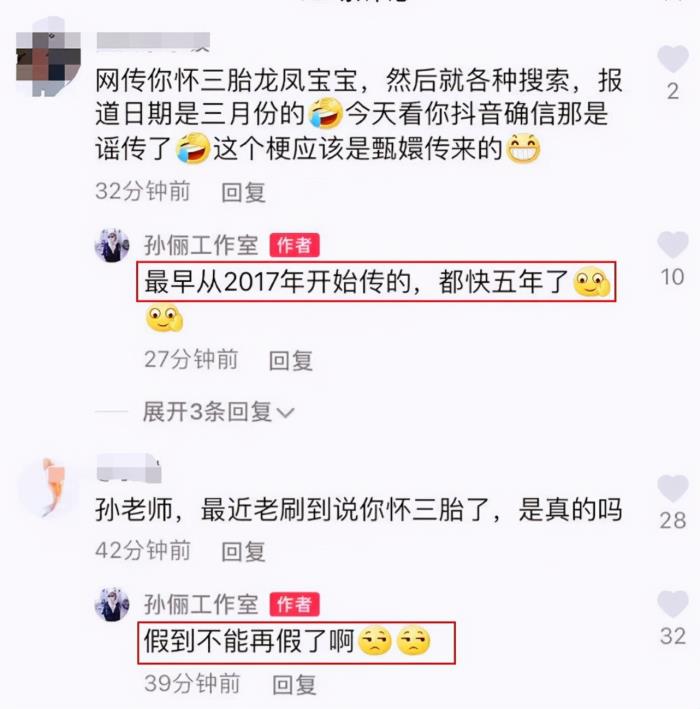 对于网友们的质疑,孙俪的工作室也耐心向大众解释,并表示:孙俪被传怀三胎的消息早在五年前就在网络中流传了,这些不实信息假的不能再假了。