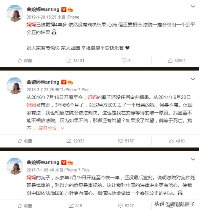 而在微博,则是以替妈妈喊冤为主。每年为妈妈在微博发声一次,已经成了她的习惯。