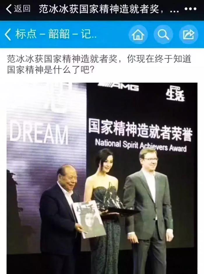 完全赞同小崔吐槽范冰冰获国家精神造就者奖:“一个真敢发,一个真敢领”,明星是国家精神造就者,那科学家、教育家、思想家、文学家是什么?