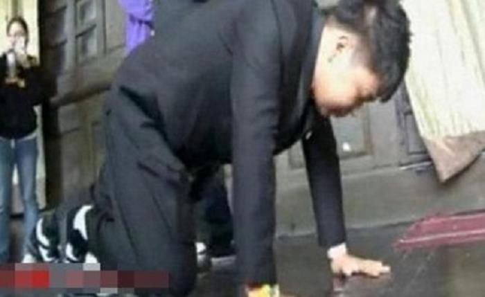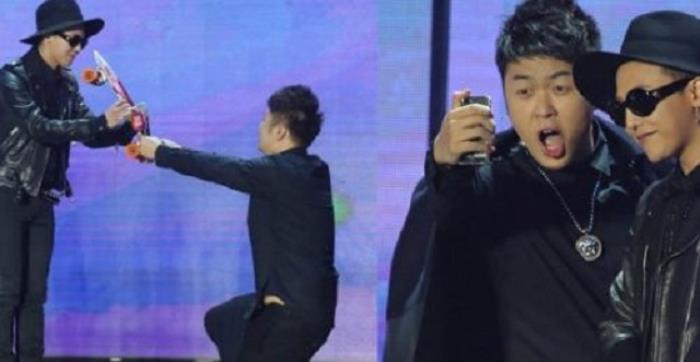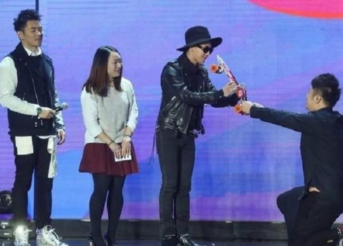 被骂得最惨的一次下跪,就是在2013年某节目颁奖典礼上,他作为颁奖嘉宾,在见到自己的偶像韩国艺人权志龙的时候,身为狂热粉丝的他忘记了自己是公众人物,是一名主持人的身份,选择了单膝下跪的方式给这个人下跪颁奖,此画面一出,立即遭到了广大观众的声讨,说他这一跪有辱国格!