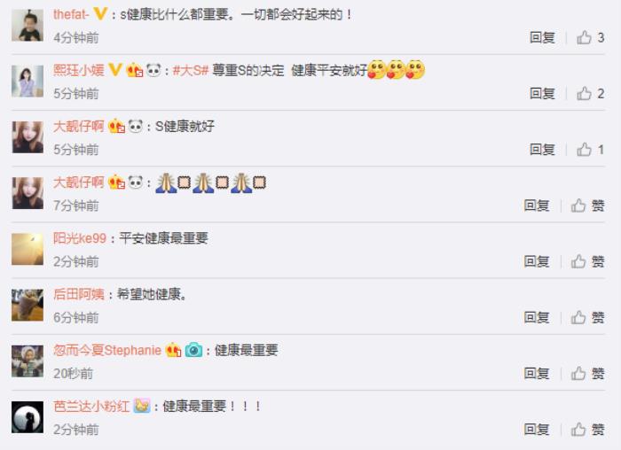 在发出消息后,许多网友也表示了对这一消息的惋惜,但网友们对于大S更多的还是祝福,不少网友也是直言:“大s健康比什么都重要。一切都会好起来的!”“平安健康最重要”等,或许有着这些可爱的网友们,大S一定会早点走出伤痛吧,祝福!