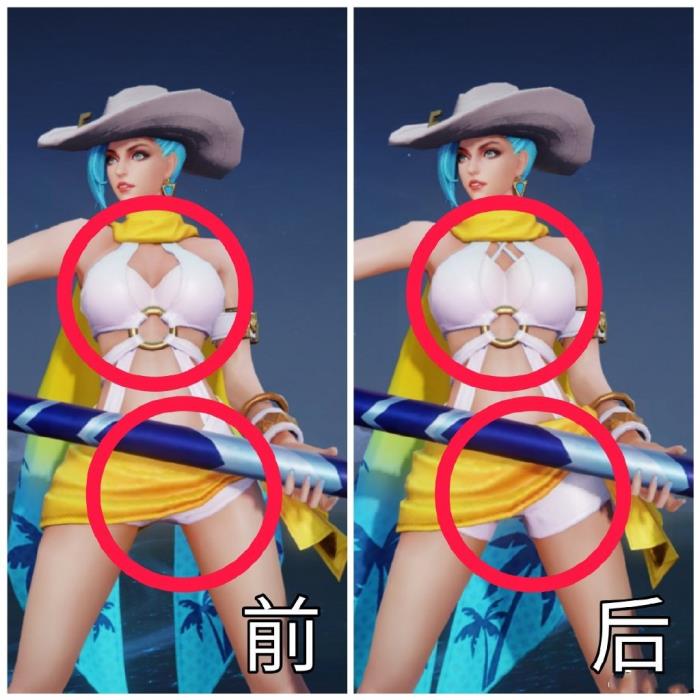 但要说改动最多的那一定是女英雄胸口处,比如貂蝉、钟无艳等等胸口处都加上了布料,大家仔细观察很多英雄都有类似的调整。