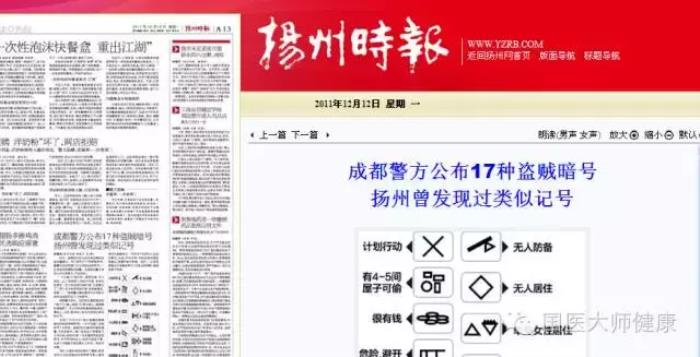 日前,《扬州时报》、《彭城晚报》报道:成都警方公布了17种小偷“踩点符号”。有了它们,我们就能离财产损失更远一些~