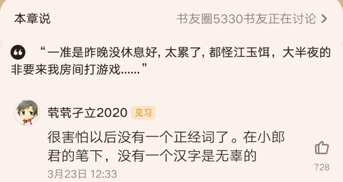 这种搞笑气氛充斥正文的情况下,评论区怎么可能少的了幽默呢?很多小郎君抛出的段子,都已经被读者充分发酵和完美解读过了。不如一起来感受一下小郎君的幽默和读者的才情吧!