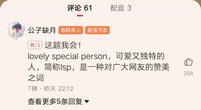 不过,看着看着也会出现那种自己不清楚的知识点。就比如lsp这样的字母缩写。对于“你知道lsp是什么意思”这样的问题,评论区的神回复直接让我笑麻了!