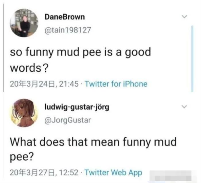 有国外网友还专门发推特询问“funny mud pee”的含义: