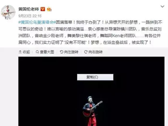 事后,黄国伦发微博说自己唱了二十多首歌,好过瘾