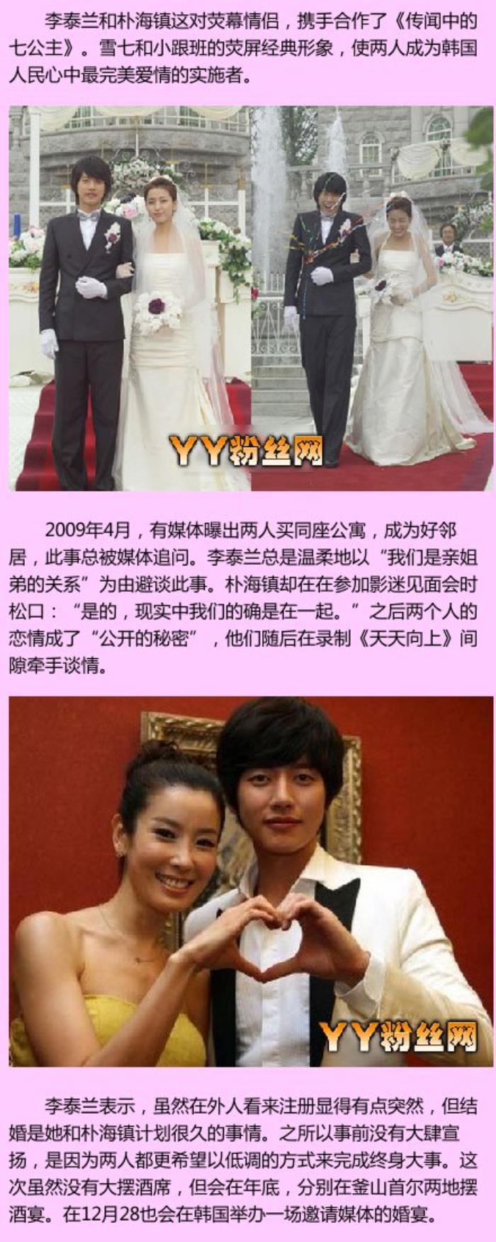 一部《来自星星的你》让众多的韩流明星人气爆棚,除了主角金秀贤以外,作为男二号的李辉京也是有不少的影迷对他格外的关注,李辉京的扮演者是朴海镇,帅气的外形和精湛的演技也非常受大家欢迎,2013年3月1日,朴海镇和知名韩国女艺人李泰兰走进了婚姻的殿堂,在整个韩国娱乐圈的艺人们都纷纷送上祝福,粉丝们也都为两人走到一起二感到高兴,婚后两人曾到马尔代夫进行了甜蜜的蜜月旅行!