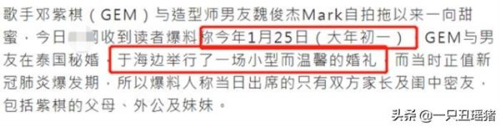 不知道为什么谣言为什么又扯上邓紫棋,毕竟邓紫棋都是快要结婚的人了,她和男友mark感情非常稳定,今年年初还传出两人已经结婚的消息,虽然邓紫棋否认了,但之后邓紫棋和男友之间的各种互动也充满了甜蜜。邓紫棋经常会晒视频,她会称呼男友为“马可叔叔,感情状况十分健康和睦,相信很快就会向大家公布好消息的。