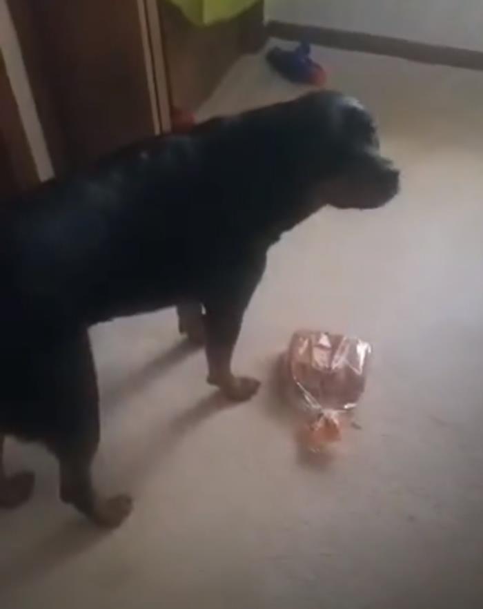 虽然罗威纳犬的咬合力很强,但Jakey不会弄碎一块饼干,真的很厉害。