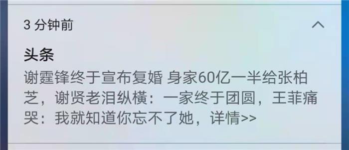 七月十八日,关于谢霆锋和张柏芝复婚的消息传得沸沸扬扬。有媒体推送新闻称,谢霆锋宣布与张柏芝复婚了,这一次复婚谢霆锋的家产还将分给张柏芝一半,也就是将要分给张柏芝三十亿元。