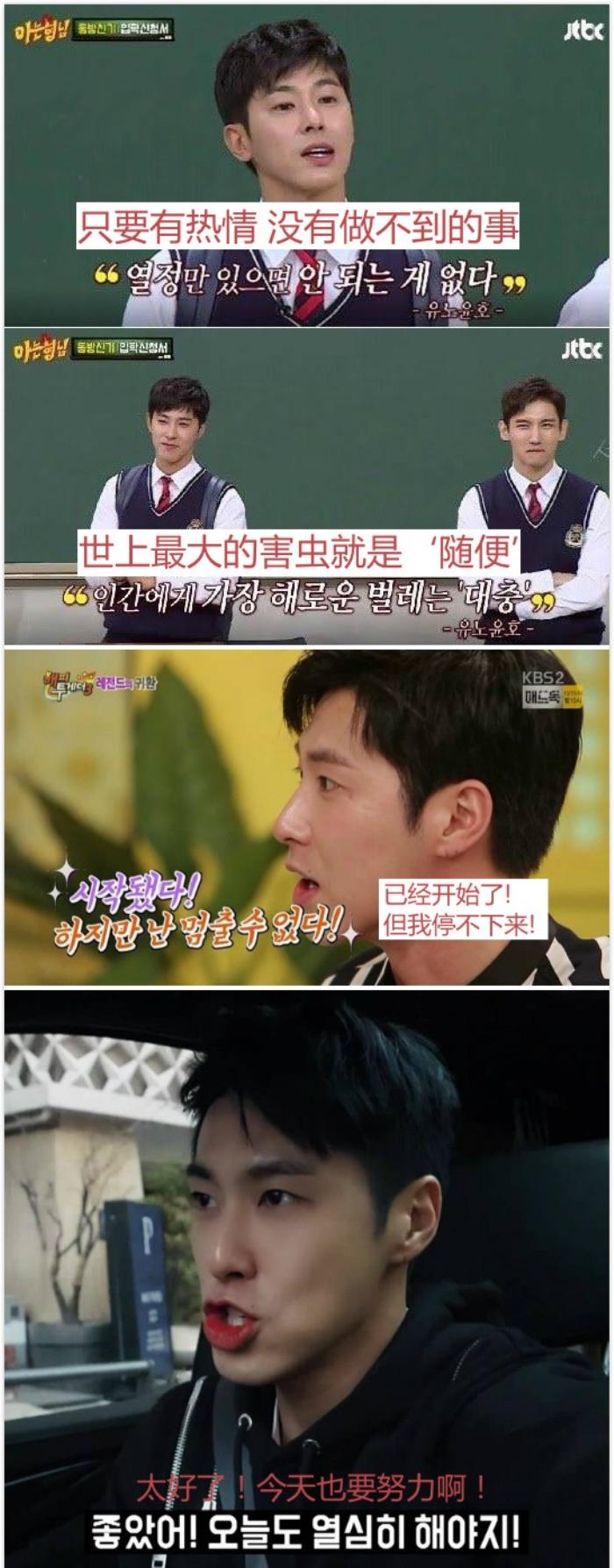 为什么「瑜卤允浩」会成为网民的「动力」呢?哈哈,想必大家都知道,允浩有个称号叫「热情男」吧!每次上综艺节目都会展示他超热情的一面,特别是在前阵子播出公开日常生活的节目《我独自生活》,他起床第一件事竟是打开东方神起的歌曲,想象自己在办演唱会,一大早就「火力全开」的跳舞,让喜欢「静态」活动的队友昌珉非常无语。