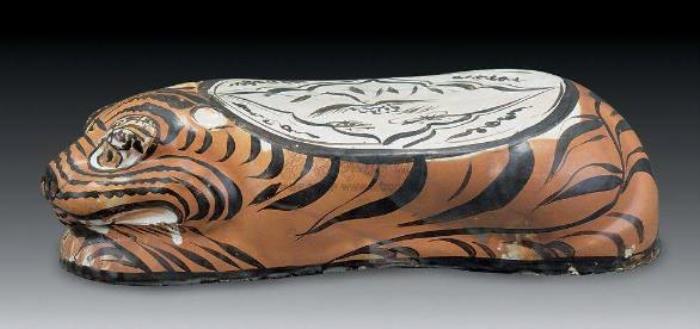 宋朝的人去世后,一般后脑勺的下面,都枕着一个瓷枕,伏虎枕是一个什么宝贝,它就是一只背部被削平的小老虎,四足蜷曲,温驯地趴在地上。 徐渭 在《伏虎画赞》中,这样写道:我观伏虎,曲蟠以枕。想一想,古人去世,后脑勺下还要枕着一只小老虎,确实是很拉风的一件事儿。