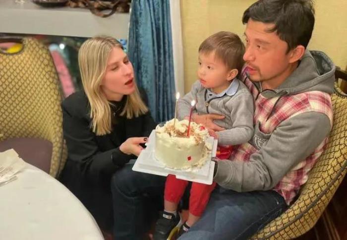 恰逢谢晖抱着宝贝儿子唱生日歌,给两岁的小家伙过生日。