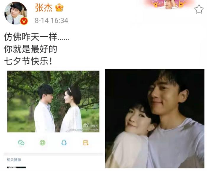 张杰还在照片旁边配文:2011走到2021,十年牵手继续向前,爱你在未来的每个十年。