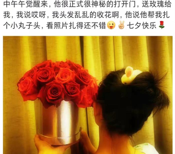 张杰偶尔还会给老婆送上一束玫瑰花,让生活中充满浪漫。