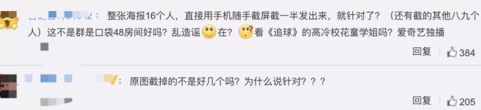 但也有人表示,整张海报16人,随便截图发出来,截掉了好几个,李艺彤也没有针对谁。