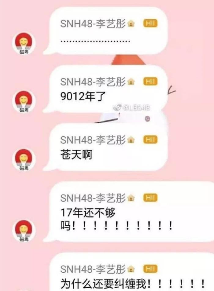 很快,李艺彤也回应昨晚发海报截掉黄婷婷一事了,称不是说只发了自己吗?现在都2019了,2017年还不够吗,为什么还要纠缠她。