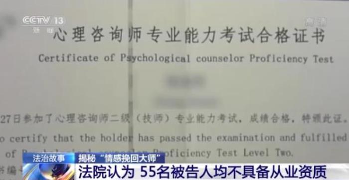 法院认为,起诉至法院的55名被告人,都不具备相关的从业资质或经验。被告人辩称他们获得了心理咨询相关证书,但经法院调查,这些所谓证书并不在国家所认可的职业资格认证之列。
