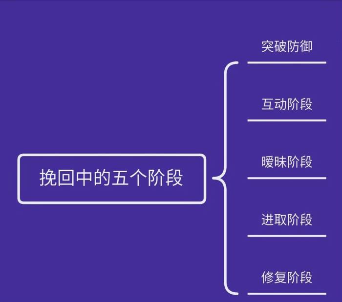 下面我把挽回分为了五个阶段,你可以对比下你所处的阶段,从而采取正确的挽回方法。
