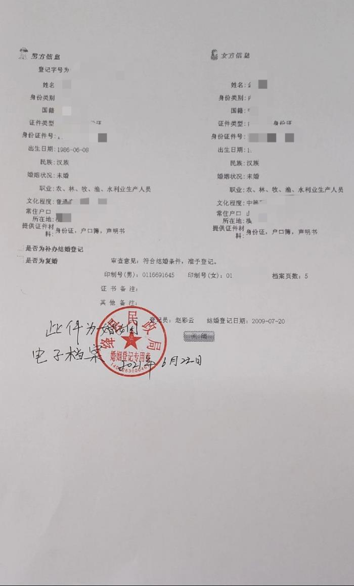 3.结婚证复印件或照片,如果没有,本人带身份证去当地民政局开具电子结婚证复印件(免费且会盖公章)PDF格式保存上传。